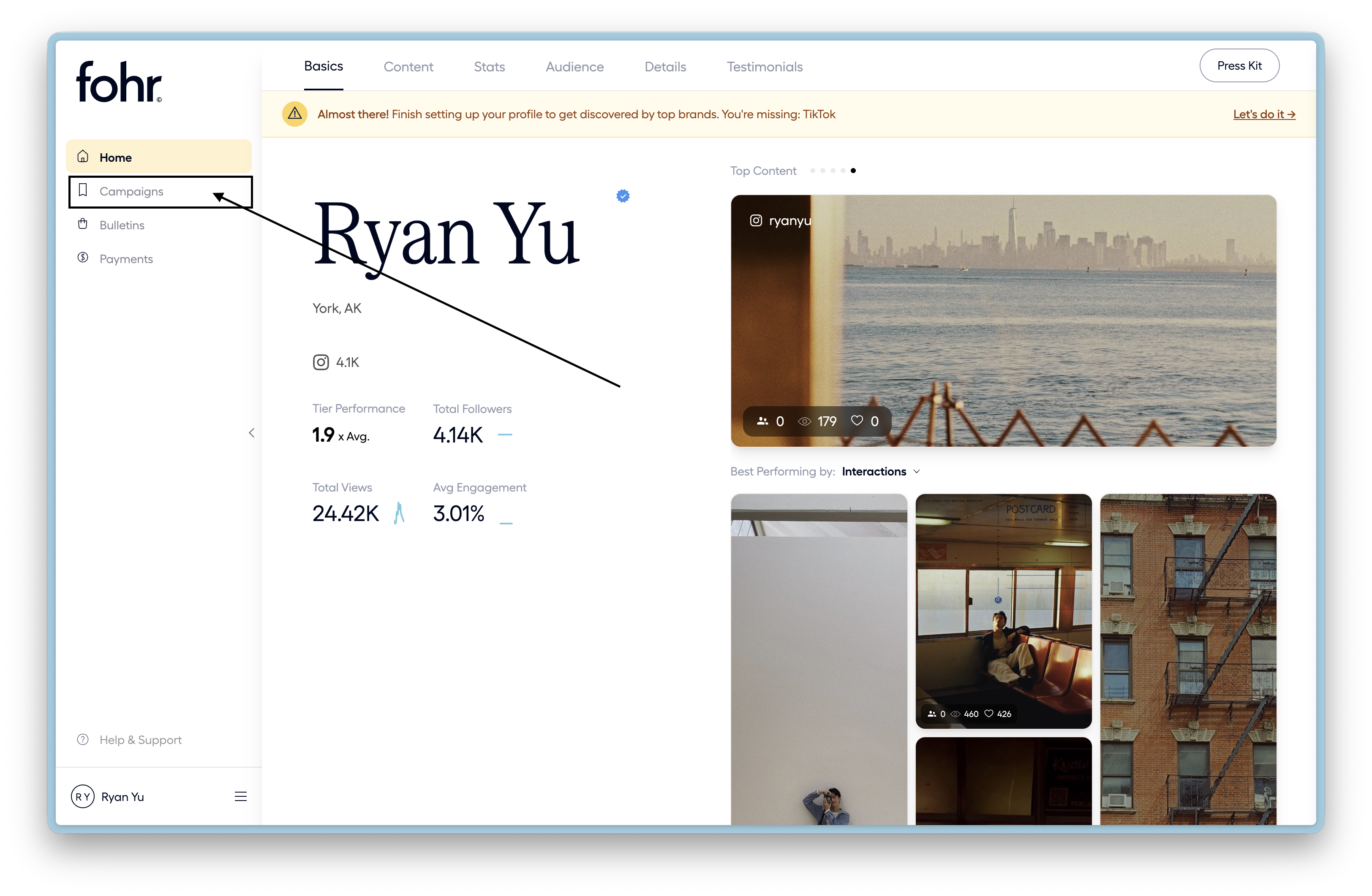 - Login to your Fohr profile at app.fohr.co